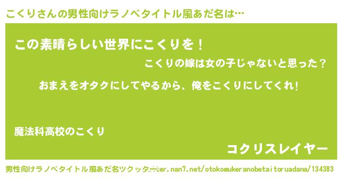 | 女子向けラノベタイトル風あだ名 | 『こくり夫妻のなれそめ』 |