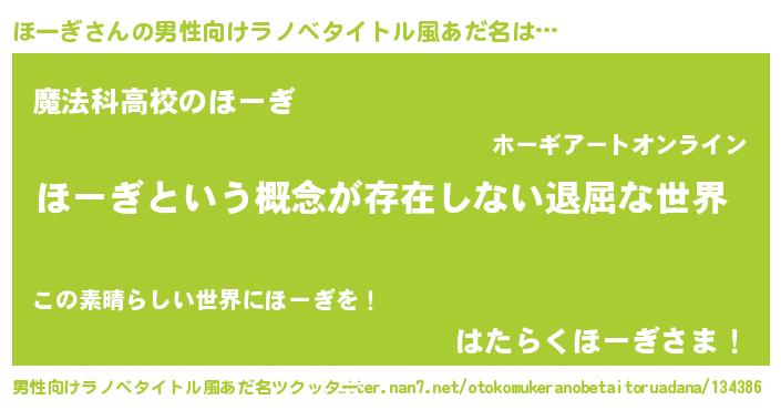 | 女子向けラノベタイトル風あだ名 | 『異世界で失敗しない100のほーぎ』 |