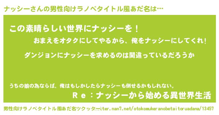 | 女子向けラノベタイトル風あだ名 | 『ナッシーは平凡を望む』『闇のナッシー』 |