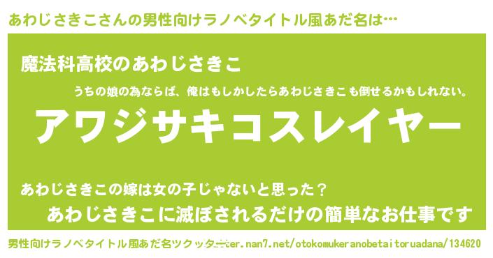 あわじさきこさんの男性向けラノベタイトル風あだ名をツクッター!
