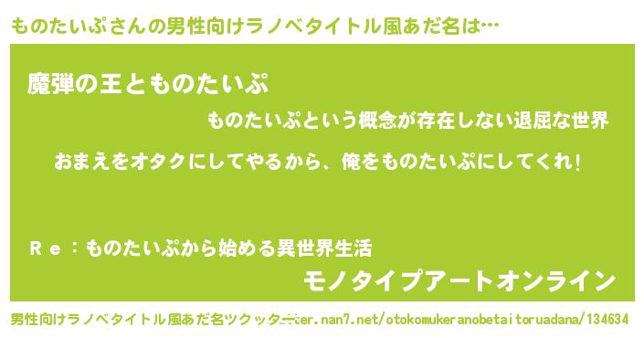 | 女子向けラノベタイトル風あだ名 | 『ものたいぷ夫妻のなれそめ』 |