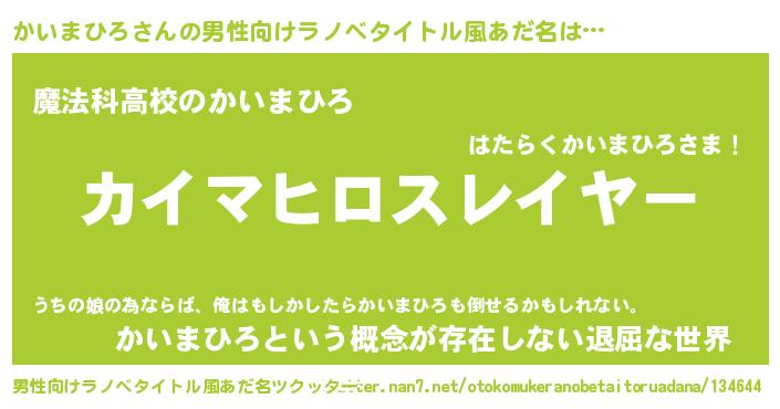 | 肩書あだ名 | 『かいまひろ中佐』『かいまひろ総統』 |