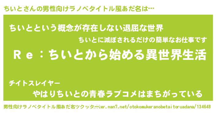 | 女子向けラノベタイトル風あだ名 | 『闇のちいと』『ちいとの雑貨屋さん』 |