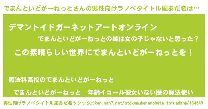 | 胡散臭い通販商品みたいなあだ名 | 『あなたにだけ特別に提供する世界で10本だけ現存している希少なブランデー…その名も「でまんといどがーねっと」』 |