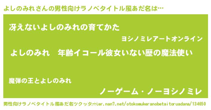 | 女子向けラノベタイトル風あだ名 | 『よしのみれの玉の輿計画!』 |
