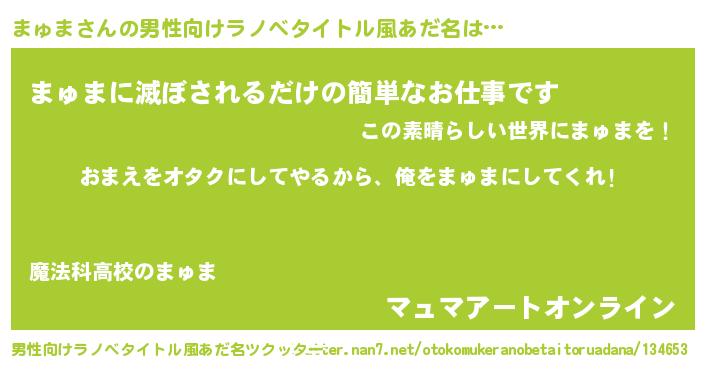 | 女子向けラノベタイトル風あだ名 | 『まゅま恋絵巻』『横柄まゅまと宰相陛下』 |