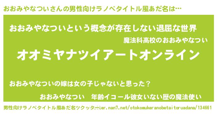 | 胡散臭い通販商品みたいなあだ名 | 『億万長者になれる霊験あらたかなお札…その名も「おおみやなつい」』 |