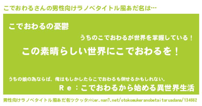 | 意味不明あだ名 | 『住所不定無職こでおわる(59歳)』 |