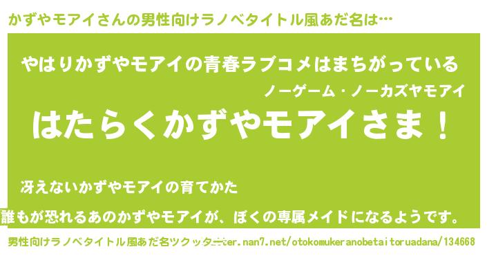 | ファンタジー風あだ名 | 『エターナルカズヤモアイー』 |