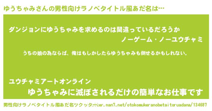 | 女子向けラノベタイトル風あだ名 | 『ゆうちゃみ伯爵の花嫁』 |