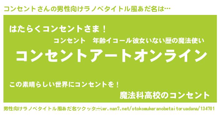 | 女子向けラノベタイトル風あだ名 | 『コンセント姫と円卓の騎士』 |
