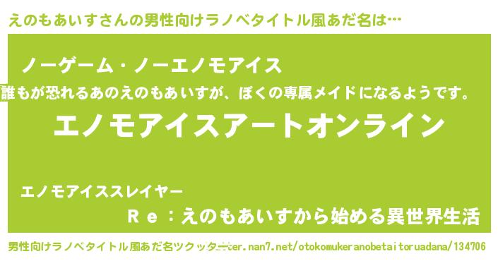 | 胡散臭い通販商品みたいなあだ名 | 『億万長者になれるブレスレット…その名も「えのもあいす」』 |