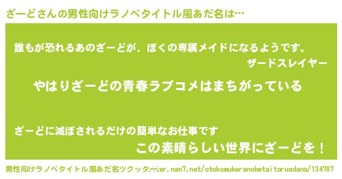 | 女子向けラノベタイトル風あだ名 | 『ざーどの雑貨屋さん』 |