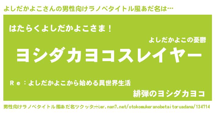 | ヒーロー風カッコイイあだ名 | 『スーパーヨシダカヨコ』『仮面ヨシダー』 |
