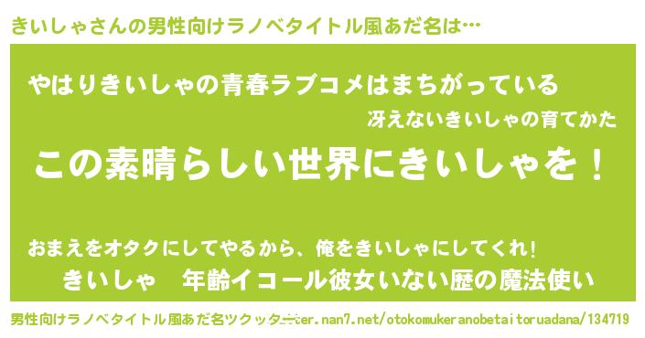 | 女子向けラノベタイトル風あだ名 | 『乙女ゲームの破滅フラグしかない悪役きいしゃに転生してしまった…』 |