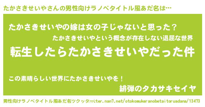 | 胡散臭い通販商品みたいなあだ名 | 『伝統あるペンダント…その名も「たかさきせいや」』 |