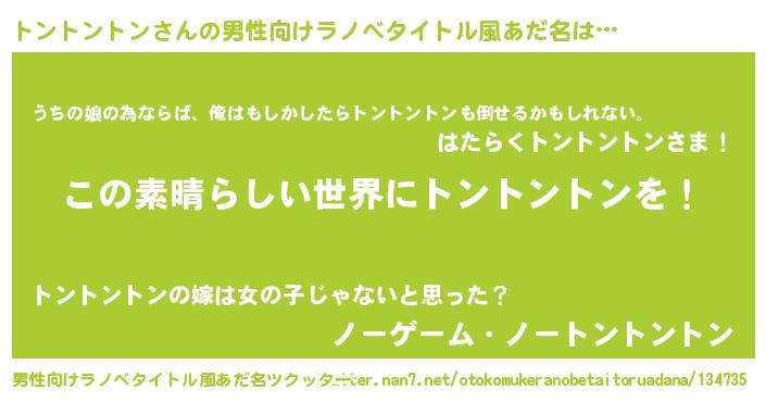 | 女子向けラノベタイトル風あだ名 | 『悪役トントントンに転生したようですが、知った事ではありません』 |