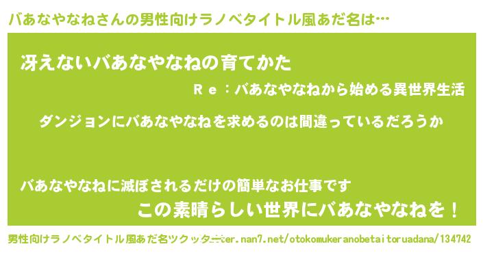 | 意味不明あだ名 | 『とにかく怪しいバあなやなね』 |