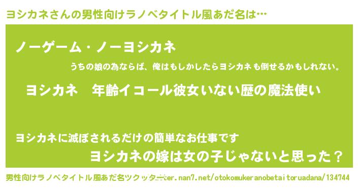 | ヘコむあだ名 | 『ヨシっ子』『レバニラ』『ヨシもー』 |