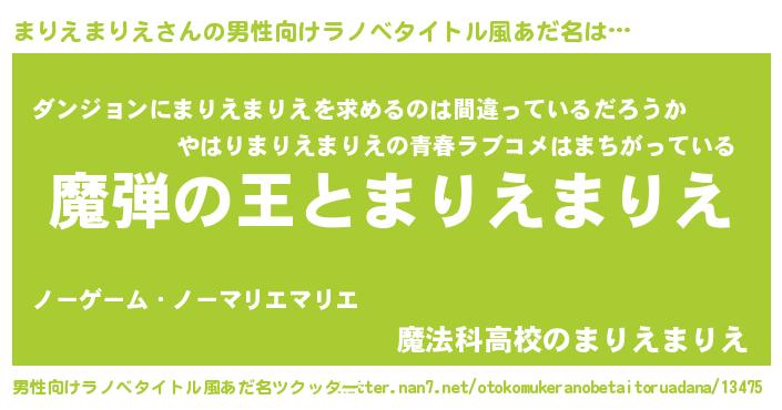 | 意味不明あだ名 | 『住所不定無職まりえまりえ(71歳)』 |