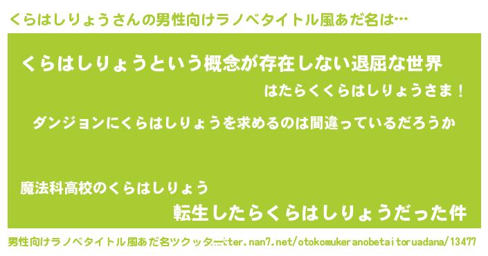 | 胡散臭い通販商品みたいなあだ名 | 『伝統あるサプリメント…その名も「くらはしりょう」』 |