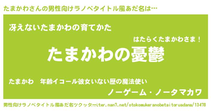 たまかわさんの男性向けラノベタイトル風あだ名をツクッター!