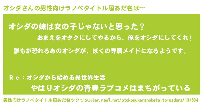 | 女子向けラノベタイトル風あだ名 | 『異世界でカフェオシダを開店しました。』 |