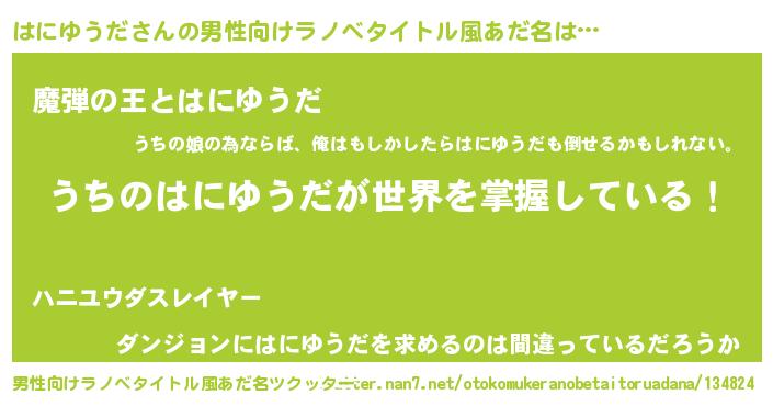 | 意味不明あだ名 | 『住所不定無職はにゆうだ(1歳)』 |