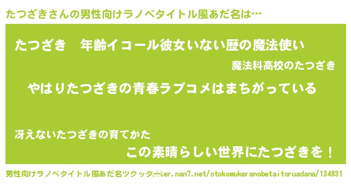 | 女子向けラノベタイトル風あだ名 | 『たつざきの雑貨屋さん』 |