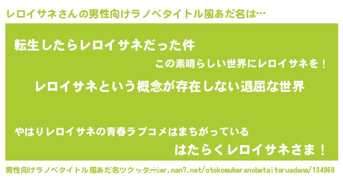 | 胡散臭い通販商品みたいなあだ名 | 『絶対に幸福をもたらす健康食品…その名も「レロイサネ」』 |