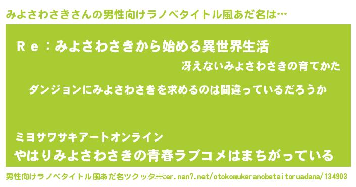 | 女子向けラノベタイトル風あだ名 | 『みよさわさきの卵を拾いまして』 |