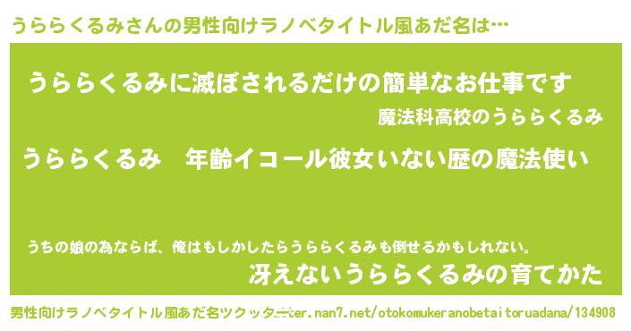 うららくるみさんの男性向けラノベタイトル風あだ名をツクッター!