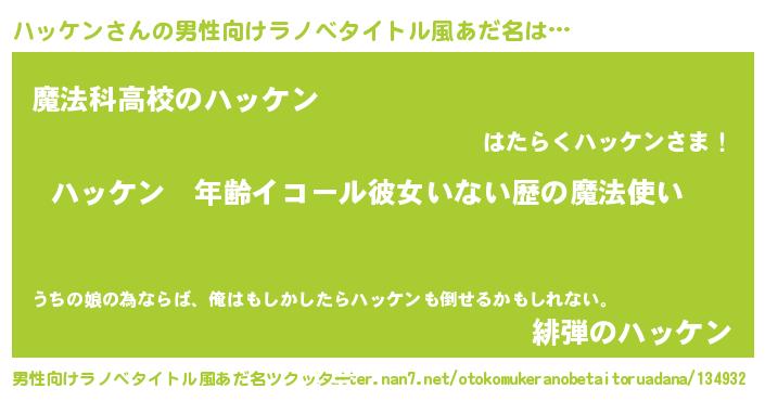 | 意味不明あだ名 | 『ニラ科ハッケン属』『自称ハッケン』 |