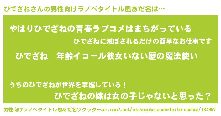 | 女子向けラノベタイトル風あだ名 | 『ひでざねの玉の輿計画!』 |