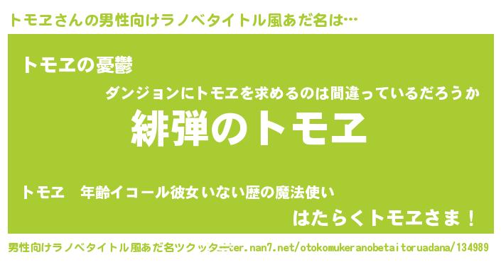 | ヒーロー風カッコイイあだ名 | 『スーパートモヱ』『黄金騎士トモ』 |