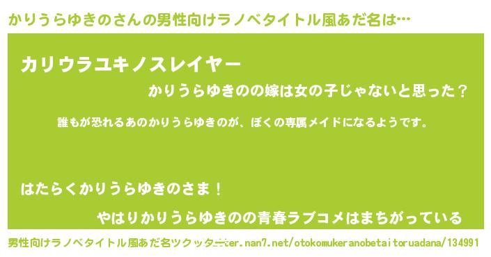 | 胡散臭い通販商品みたいなあだ名 | 『来世でも幸せになれる健康食品…その名も「かりうらゆきの」』 |