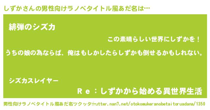 | 意味不明あだ名 | 『しずかフォーエバー』『自称しずか』 |