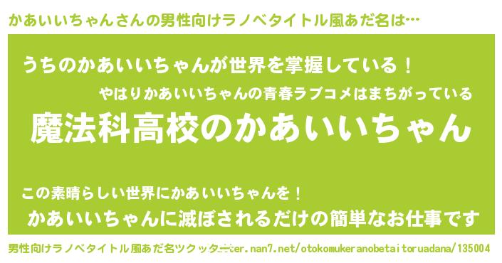 | 女子向けラノベタイトル風あだ名 | 『かあいいちゃんなんてお断りですっ。』 |