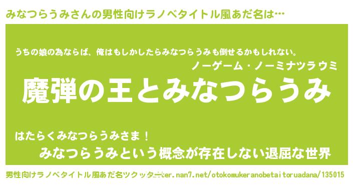 | ヒーロー風カッコイイあだ名 | 『仮面ミナダー』『ネオミナツラウミ』 |