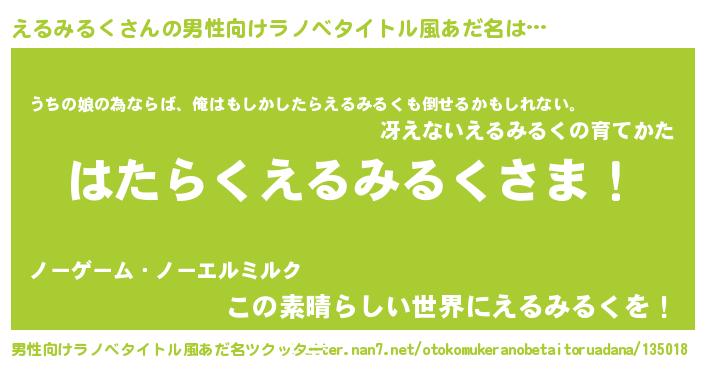 | 胡散臭い通販商品みたいなあだ名 | 『幸せが訪れる高級そうな壺…その名も「えるみるく」』 |