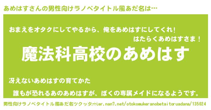 | 胡散臭い通販商品みたいなあだ名 | 『テレビで話題のアガリクス…その名も「あめはす」』 |