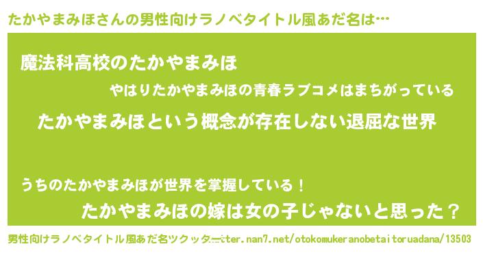 | ヘコむあだ名 | 『たかやまみほ(苦笑)』『たかっぺ』 |