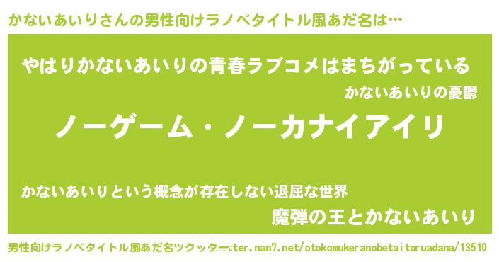 | ヒーロー風カッコイイあだ名 | 『慈愛の使者かないあいり』 |