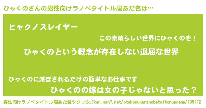 | ヘコむあだ名 | 『ひゃくの(震え声)』『ひゃっ子』 |