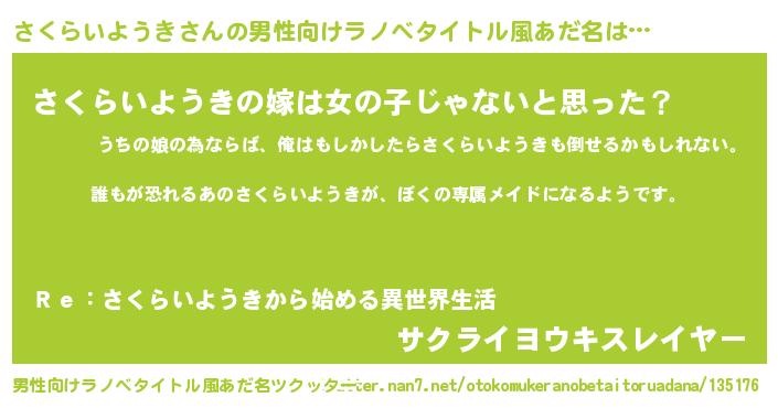 | ヘコむあだ名 | 『さくらいようき(遠い目)』『さくっぺ』 |
