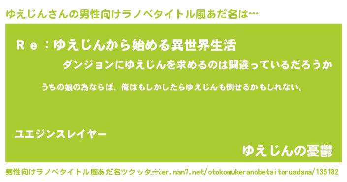 | 意味不明あだ名 | 『ゆえじんフォーエバー』『自称ゆえじん』 |