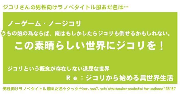 | 意味不明あだ名 | 『住所不定無職ジコリ(43歳)』『自称ジコリ』 |