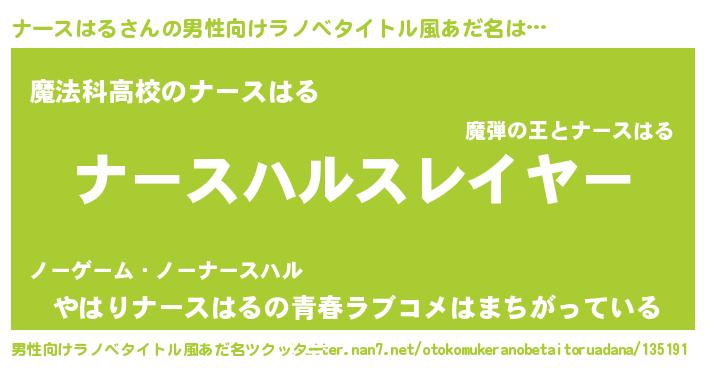 | ヒーロー風カッコイイあだ名 | 『超時空戦士ナースハル』『仮面ナーダー』 |