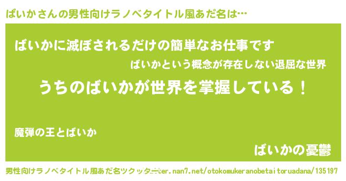 | 胡散臭い通販商品みたいなあだ名 | 『億万長者になれるブレスレット…その名も「ばいか」』 |