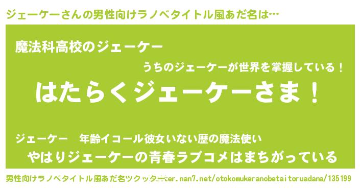 | 伝説のあだ名 | 『秘められし陰陽師ジェーケー』 |
